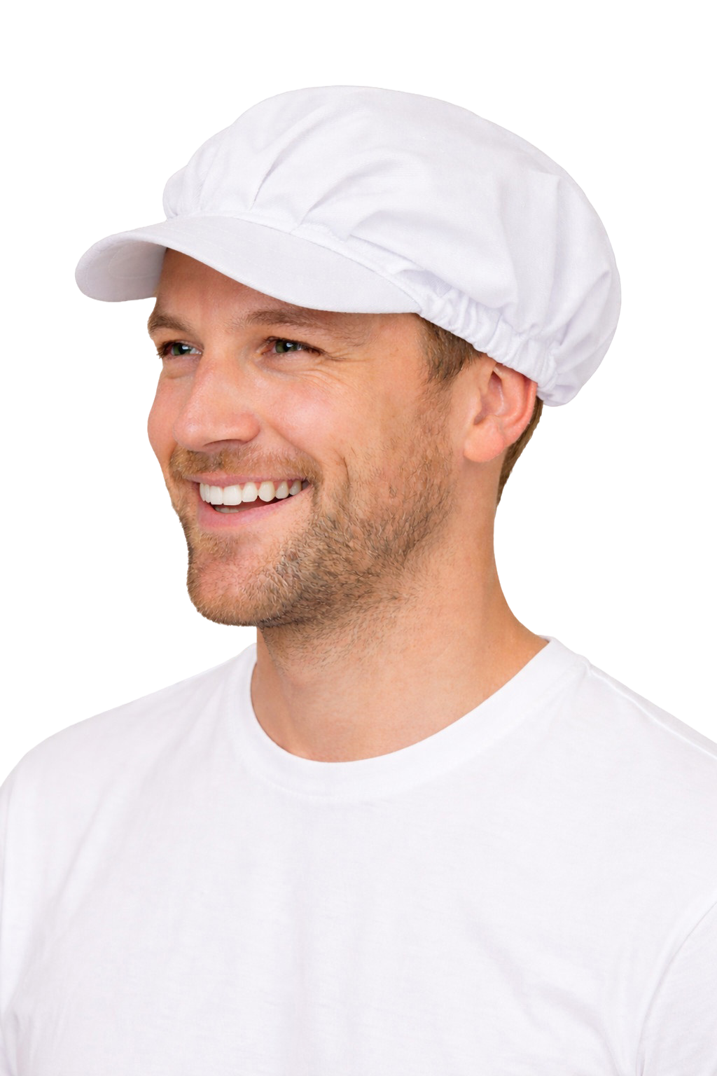 Бяла кухненска шапка за пекарни с козирка – удобна шапка за гастрономия и пекарни