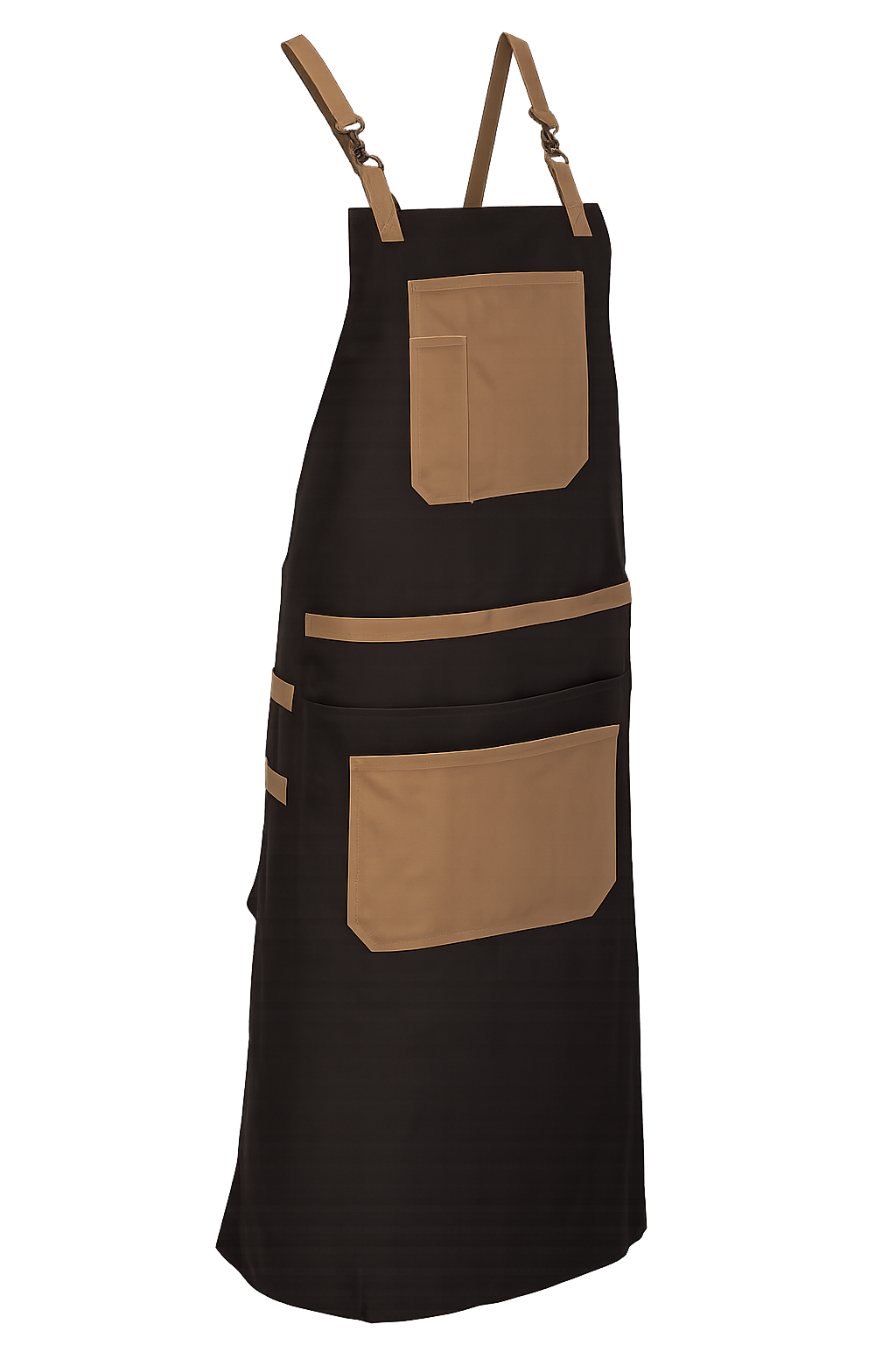 Черен гастрономически престилка от типа бариста / занаятчийско е практично и стилно облекло, предназначено за работа в гастрономията, при грила и в различни занаятчийски професии. Изработен от издръжлива платно тип canvas 100% памук, осигурява висока траеност, комфорт при носене и устойчивост при интензивна употреба.