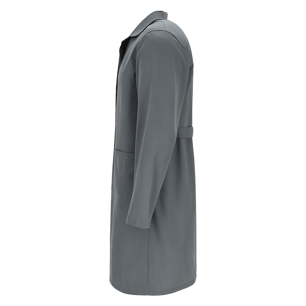 Сивата женска лабораторна престилка е професионално защитно облекло, създадено за студентки, лаборантки, химички, биолози, както и работници в промишлеността и университети. Изработена от издръжлива материя (65% полиестер, 35% памук), осигурява отлична устойчивост на пране и интензивна употреба, като в същото време е дишаща и удобна за ежедневно носене.