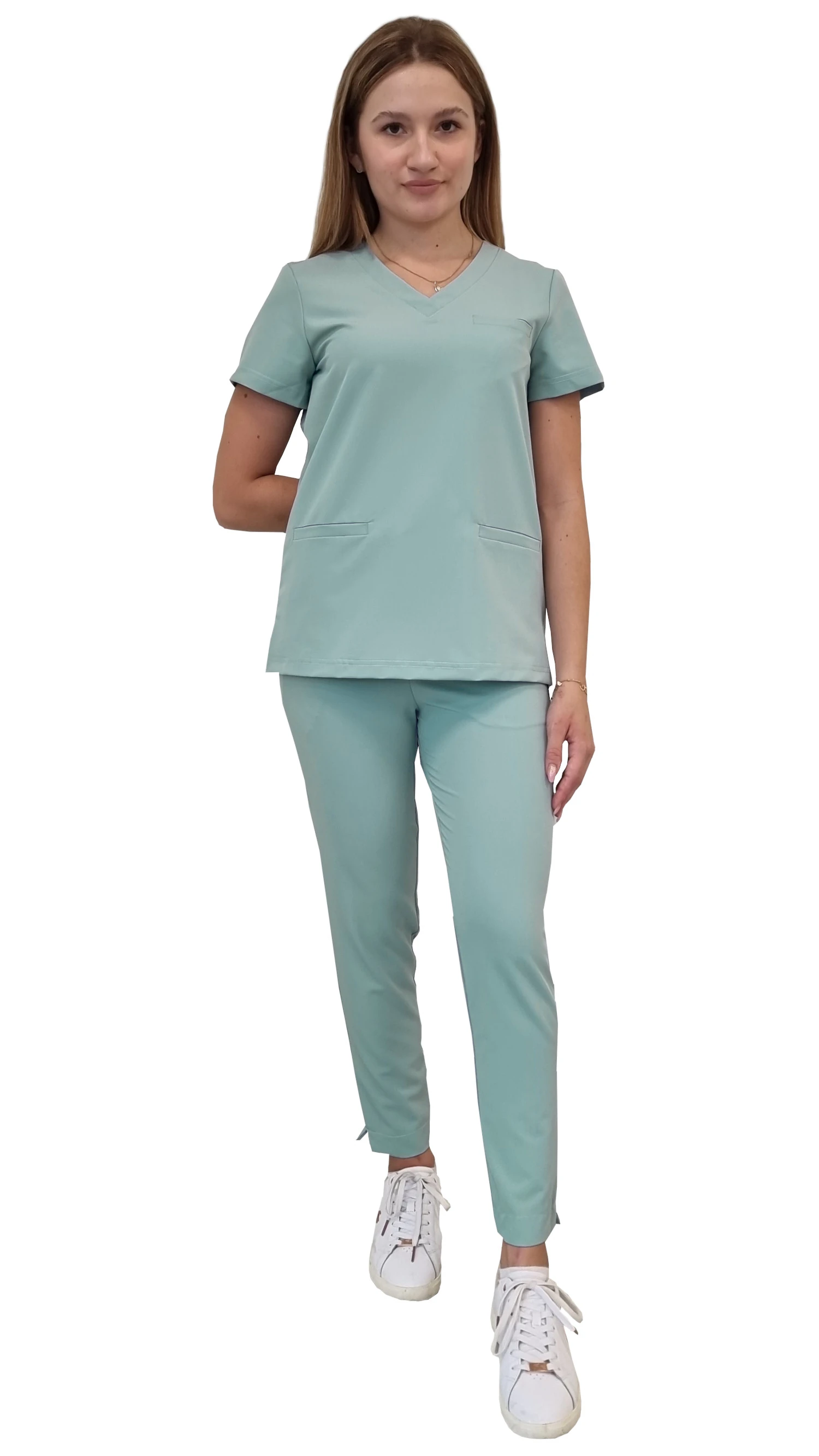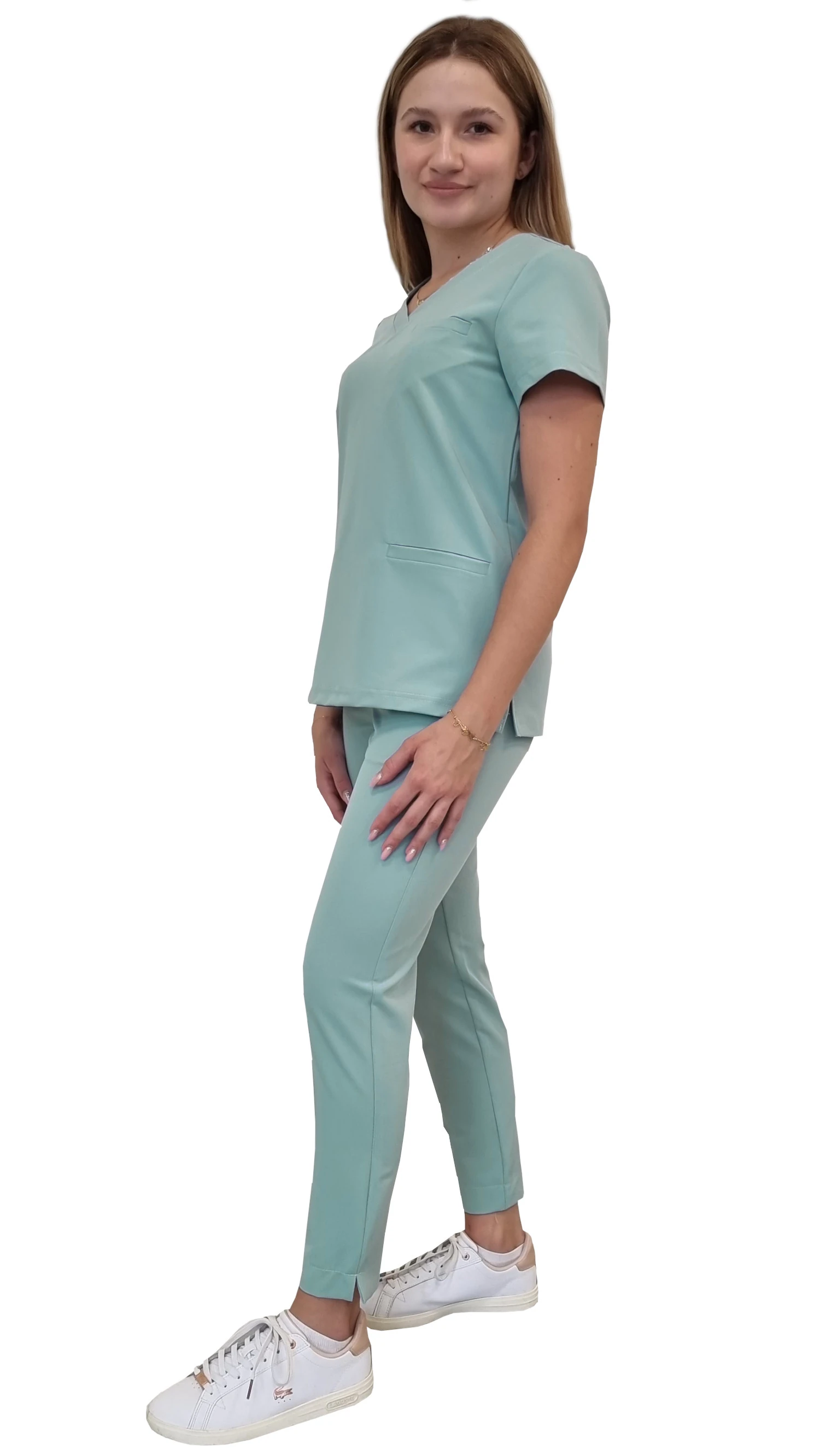 Медицински униформ, женски BASIC PREMIUM в мента цвят, това е професионален комплект, който съчетава модерен стил, удобство и висококачествена плат. Комплектът включва медицинска блуза BASIC PREMIUM и медицински панталон BASIC PREMIUM, които заедно формират надежден scrubs за работа в медицинската и beauty индустрия.