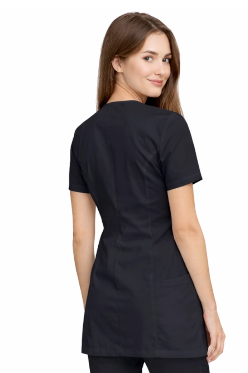 Медицинско дамско яке CASUAL PREMIUM в черно е модерен и елегантен елемент от професионалните облекла, създаден с мисъл за жените, работещи в медицината, козметиката и фризьорството. То комбинира професионален вид с максимален комфорт при носене, благодарение на което е идеално както за лекарски кабинети, клиники за естетична медицина, така и за фризьорски салони, SPA центрове или рецепции.
