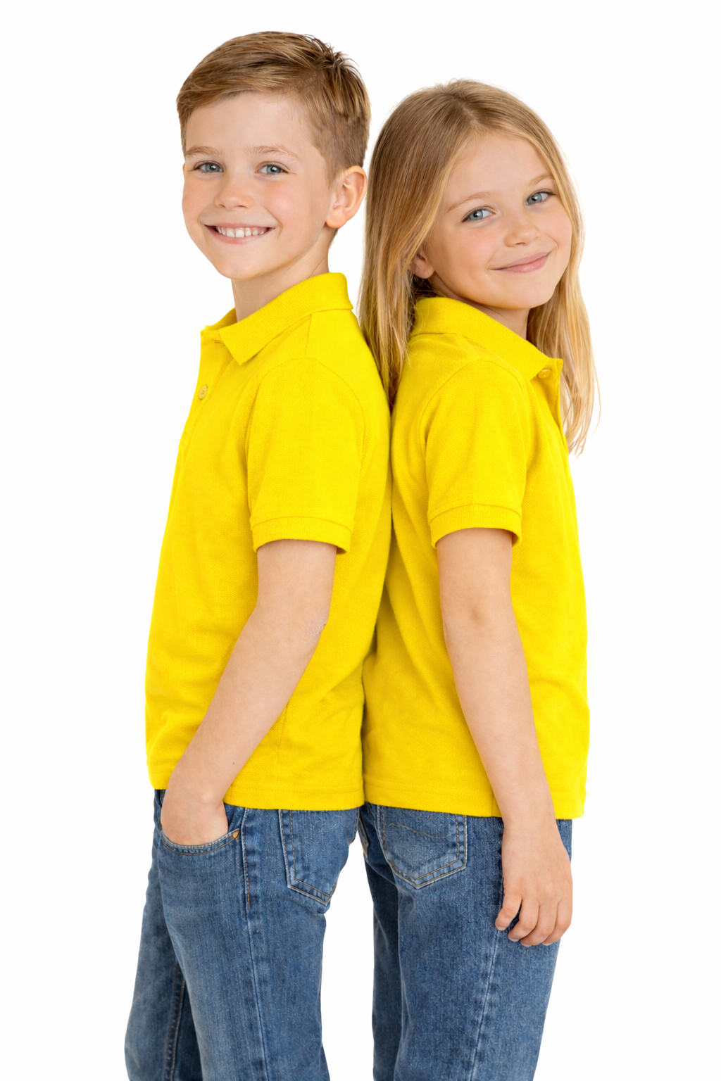 Жълтата детска поло блуза е идеална за училищни представления, семейни тържества, първа света приобщаваща, рождени дни или други събития изискващи елегантен и аккуратен облекло.