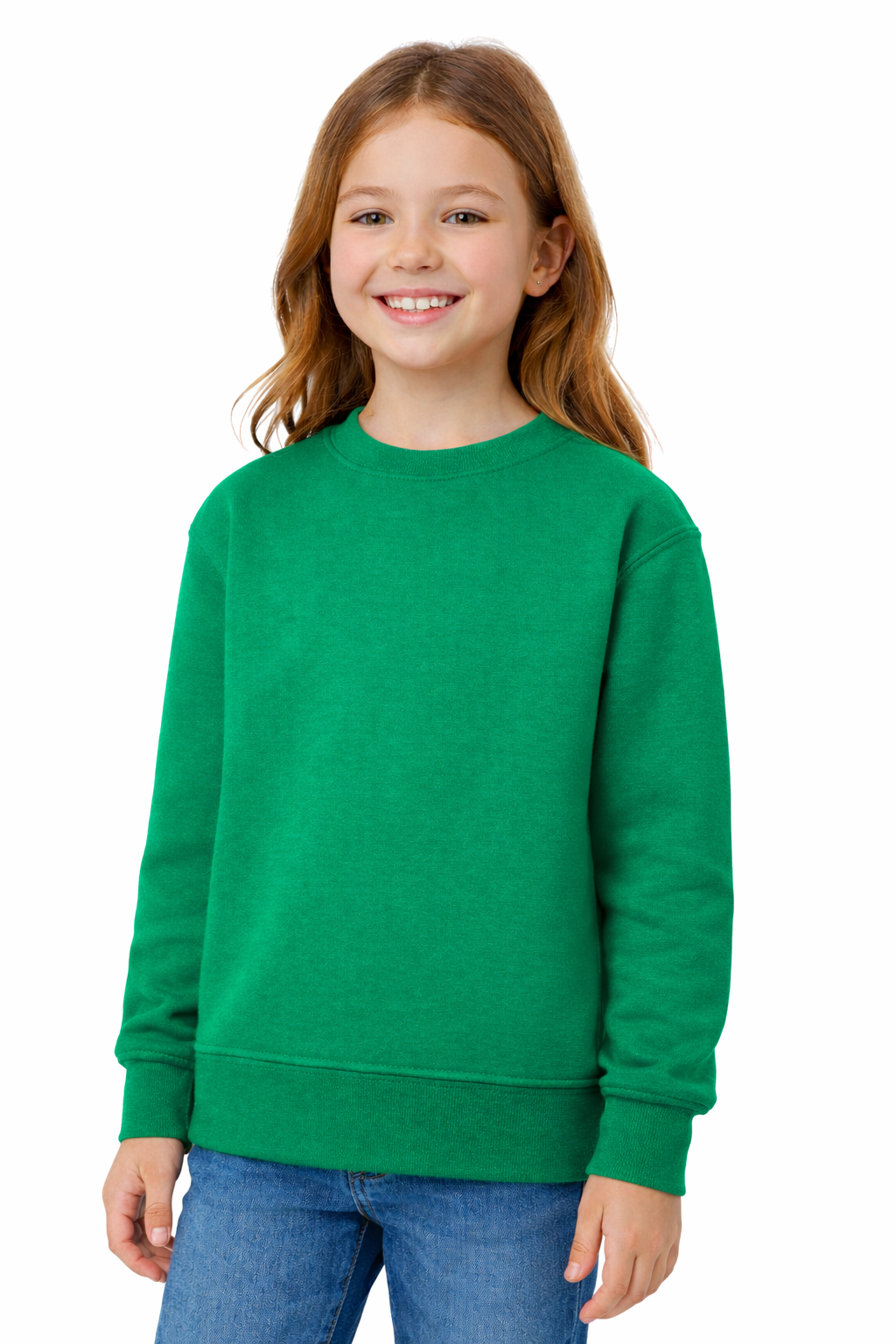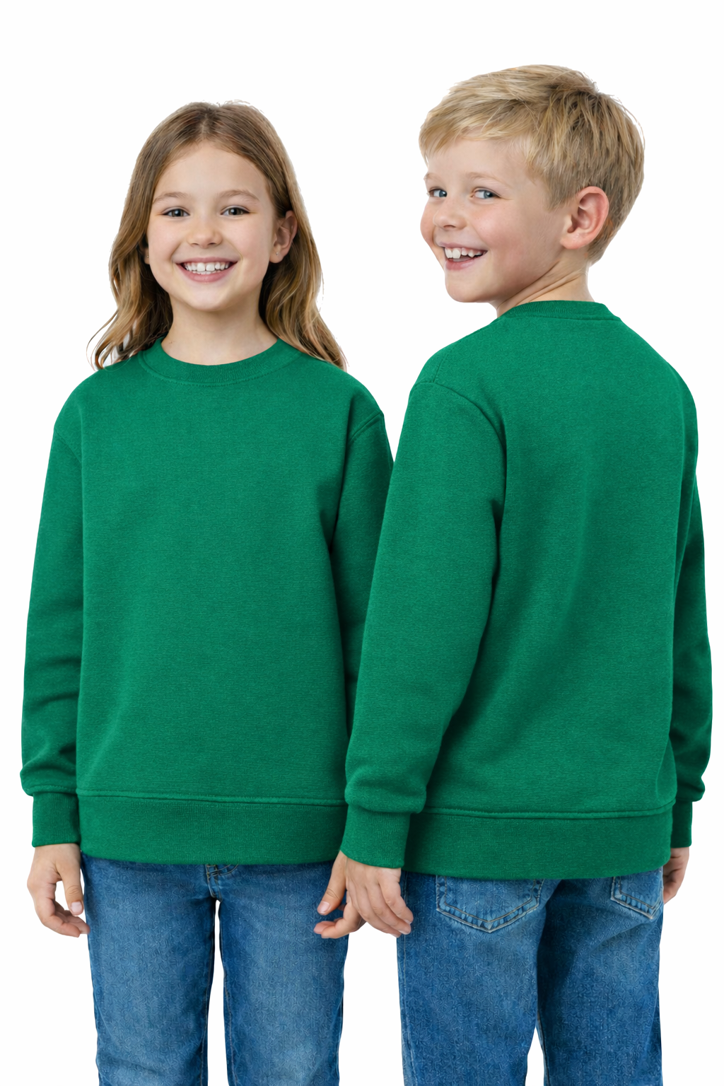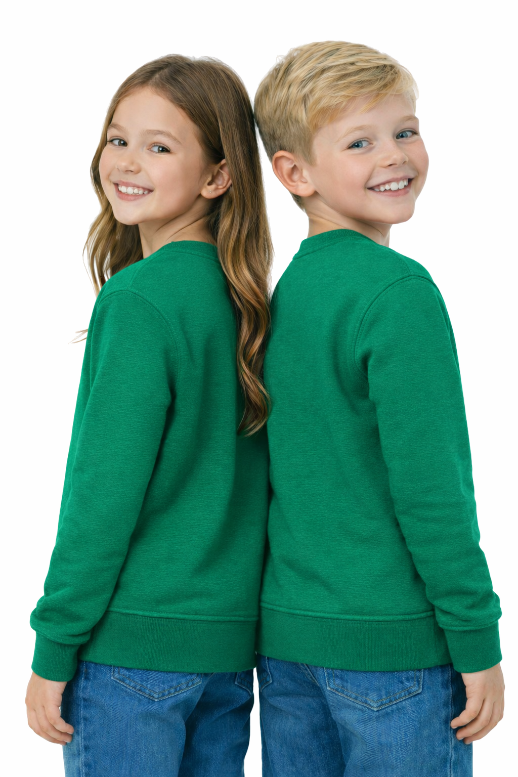 Зелена детска суитшърт е класическа и удобна блуза с кръгло деколте, предназначена за момчета и момичета. Изработена от висококачествени материали, осигурява комфорт при носене, издръжливост и свобода на движение по време на ежедневните активности.
