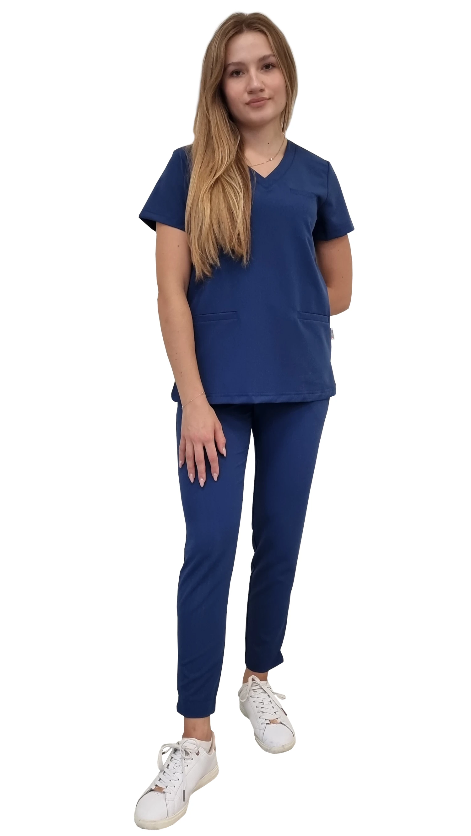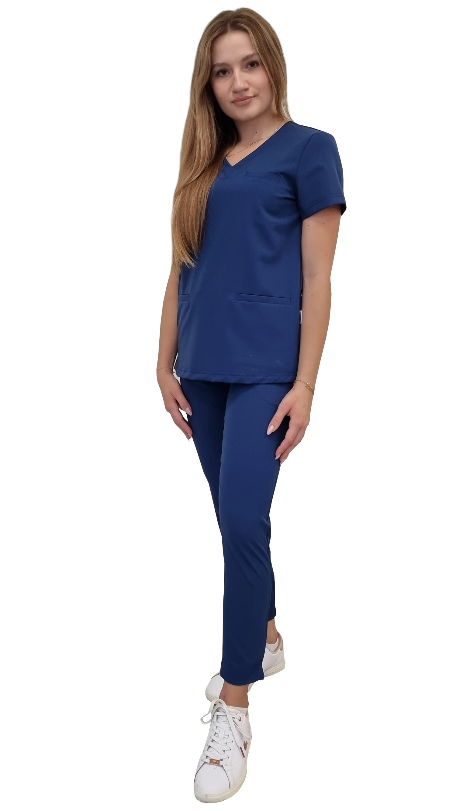 Комплект медицинско облекло за жени BASIC PREMIUM в тъмен син цвят е идеалното решение за професионалистки, които ценят комфорта и елегантността в работата. Изработен от висококачествени материали, той осигурява отлична издръжливост и удобство при носене през целия ден. Със съвременния си кройка и деликатна цветова гама, комплектът перфектно се вписва в актуалните тенденции в медицинската мода. Проверете колко лесно можете да съчетаете функционалността със стил!
