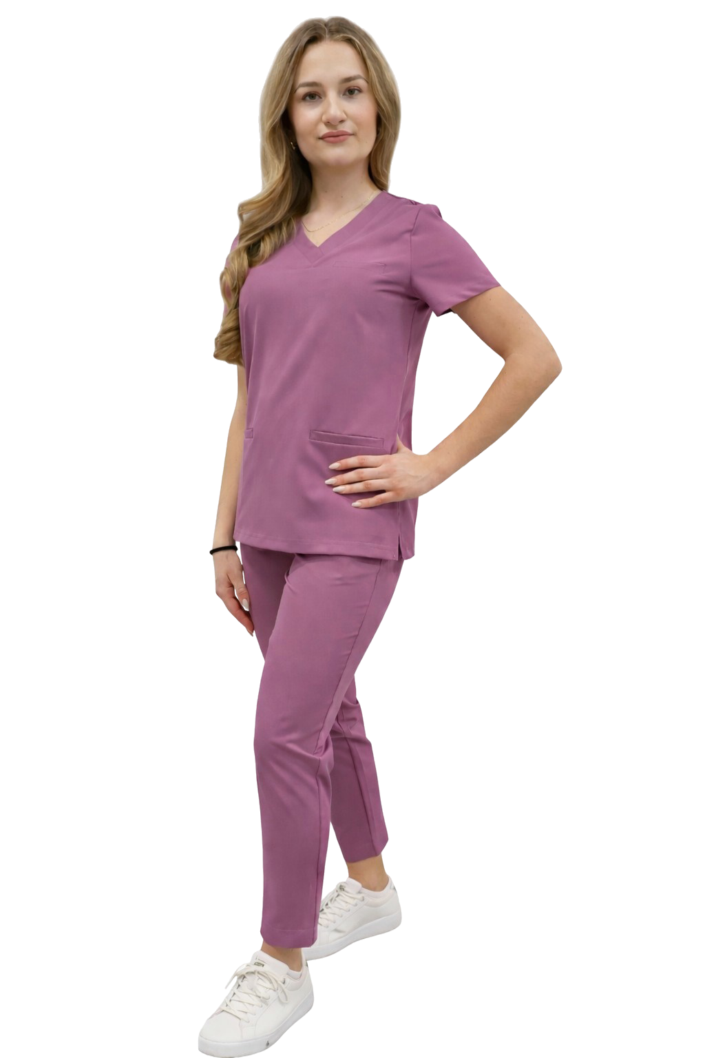 Комплект медицински дамски BASIC PREMIUM – мръсно розово е комплект от блуза и панталони, който осигурява еластичност, удобство и елегантен вид. Отличен избор за жени, които ценят комфорта и професионализма в ежедневната си работа.