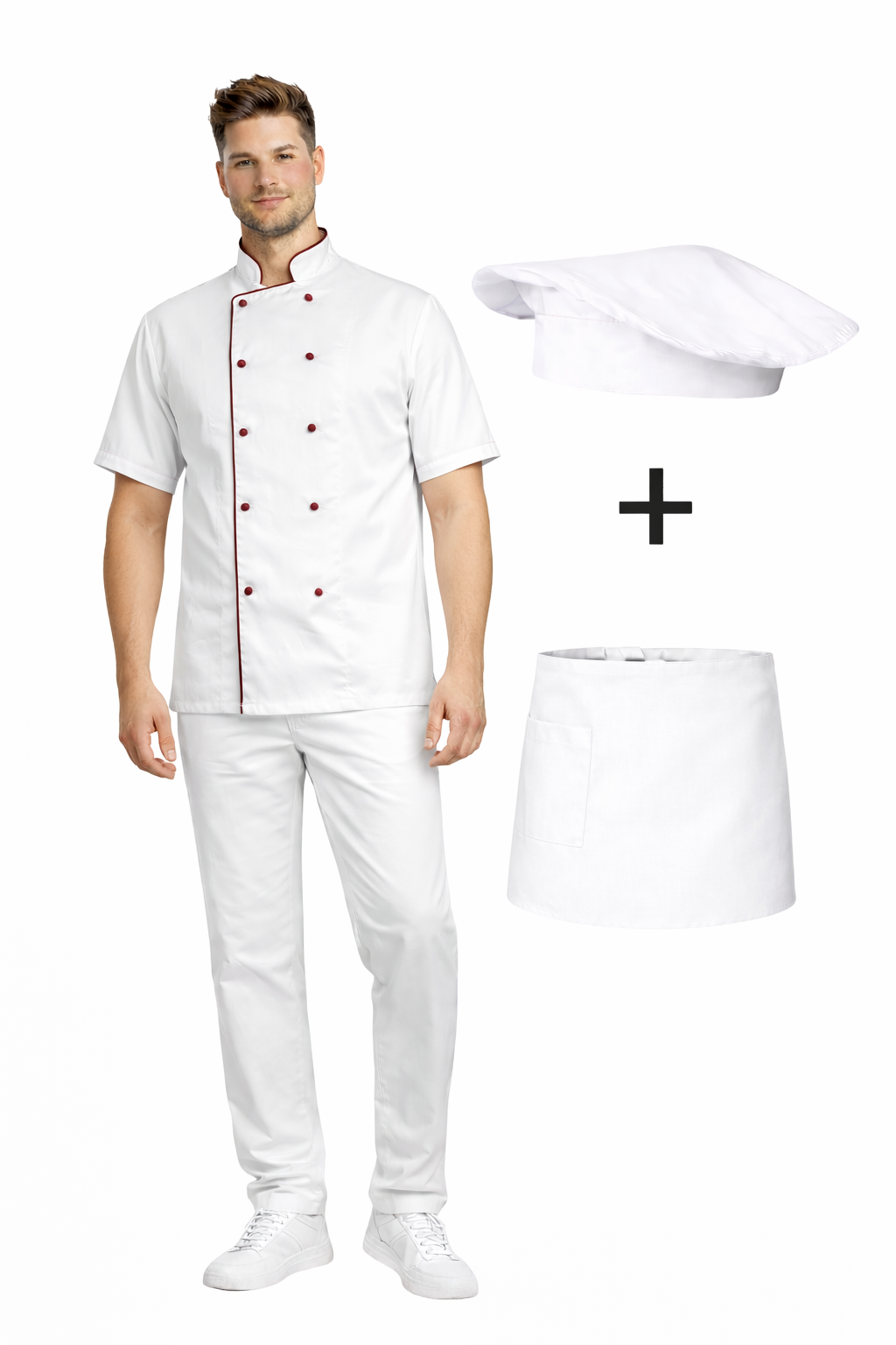 Този готварски комплект е създаден с мисълта за ежедневна, интензивна работа. Тъканите са устойчиви на смачкване, лесни за поддръжка и запазват естетичния вид дори след многократно пране.
