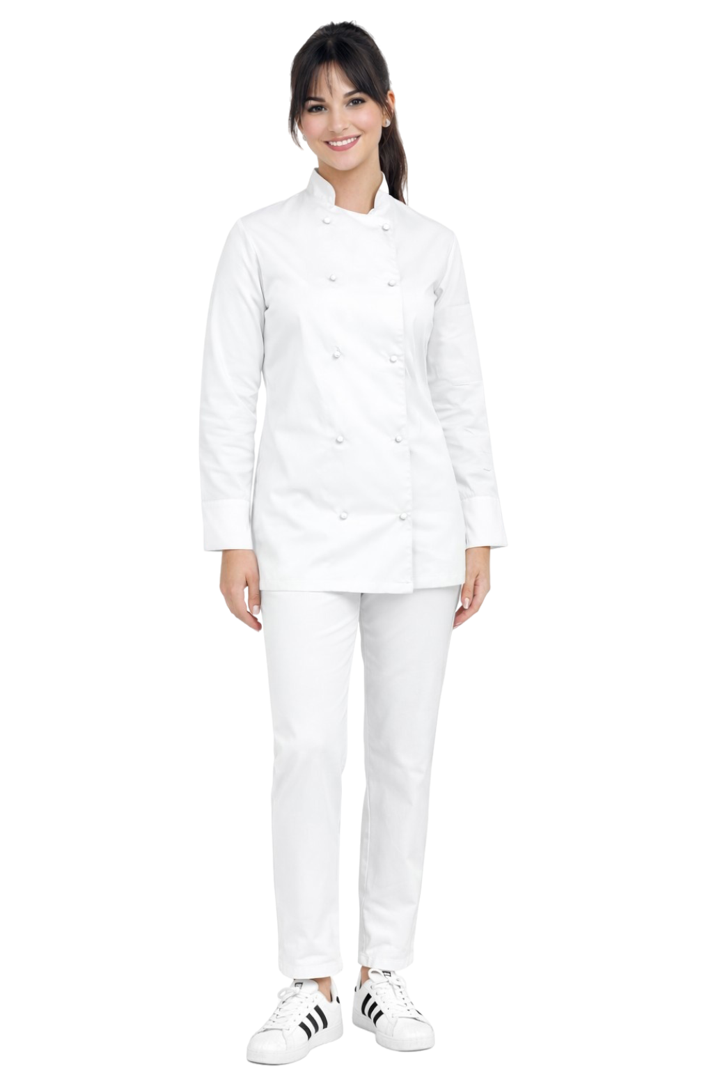 Комплектът е перфектен за ресторанти, хотели, кейтъринг и малка гастрономия. Това е предложение за дами - готвачи, помощници в кухнята и ученички от гастрономически училища.