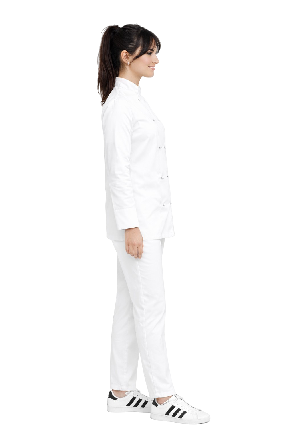 Дамски комплект готварски дрехи, състоящ се от вталена готварска блуза и елегантни панталони тип цигара, е идеалната комбинация от професионализъм, удобство и модерен стил. Комплектът е проектиран с мисъл за жените, работещи в гастрономията, които ценят естетиката и комфорта по време на многочасова работа.