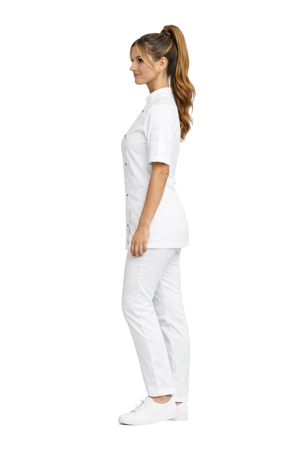 Внимателно подбраните тъкани и женския крой правят този комплект идеален за използване както в ресторанти, хотели, пабове, кафенета, така и в учебни заведения.