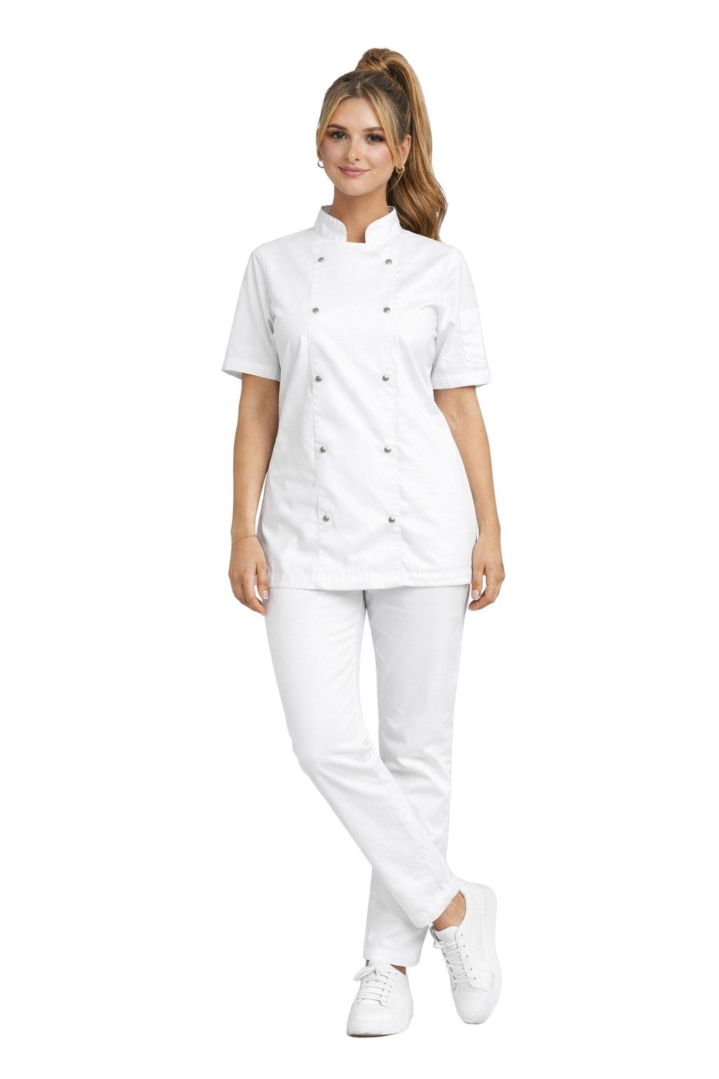 Женски комплект от готварско облекло – роба с копчета и готварски панталони