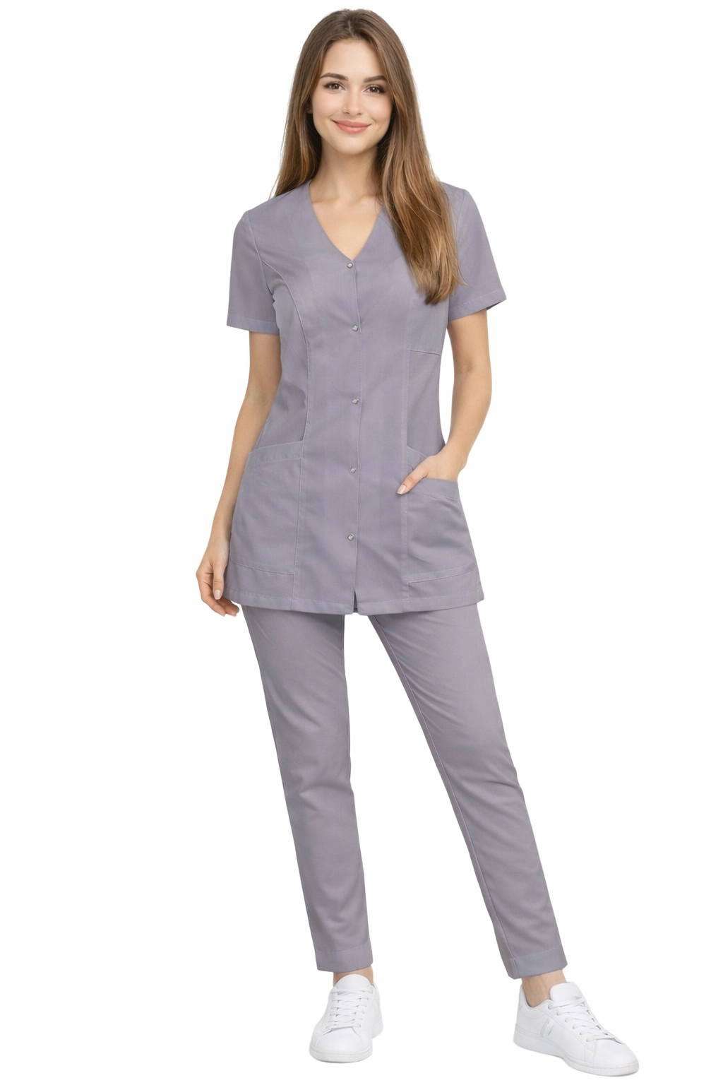 Това е идеалният избор за лекарки, медицински сестри, физиотерапевти, козметички, фризьорки и специалистки в областта на красота, SPA и уелнес, които ценят естетиката и комфорта на работа.