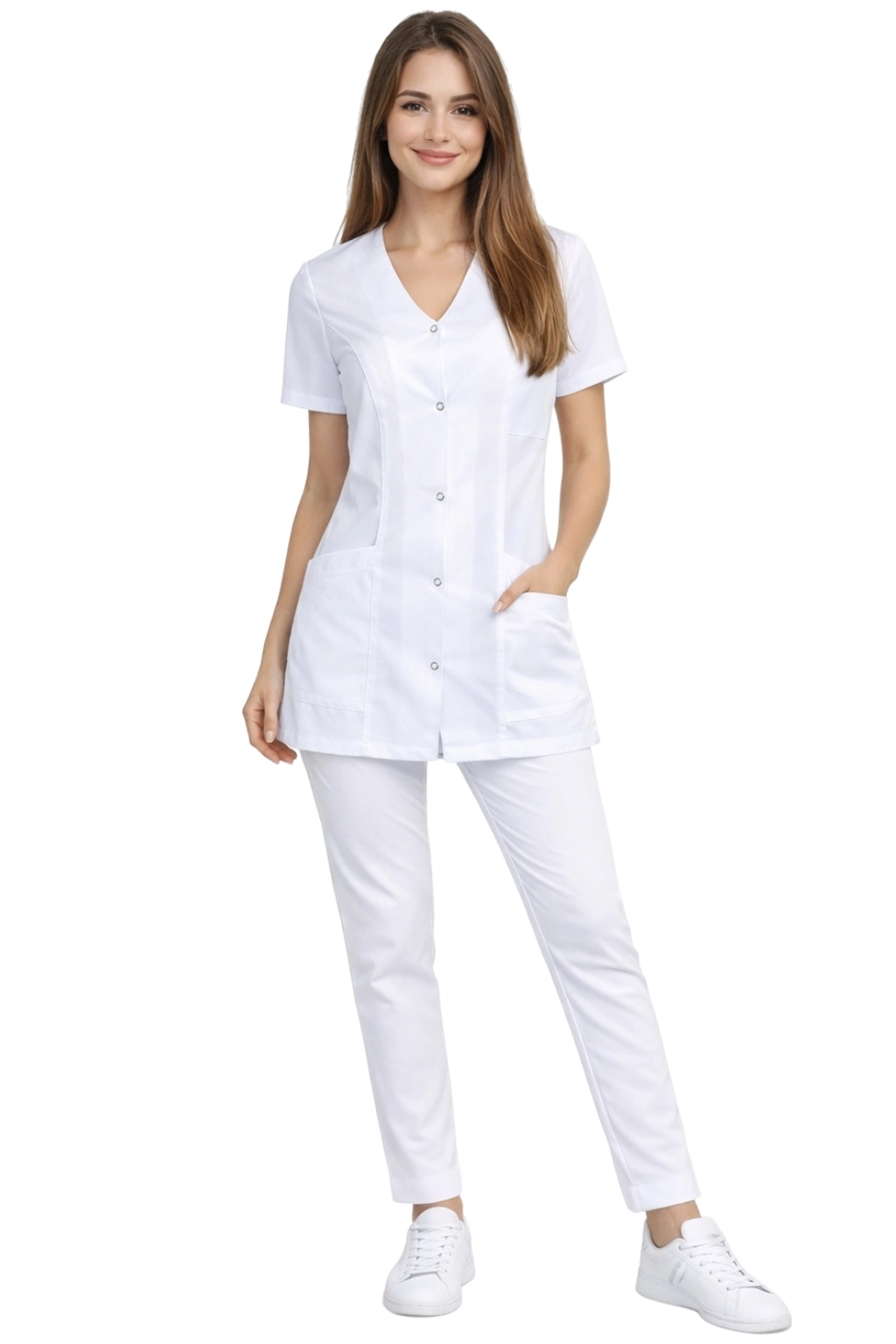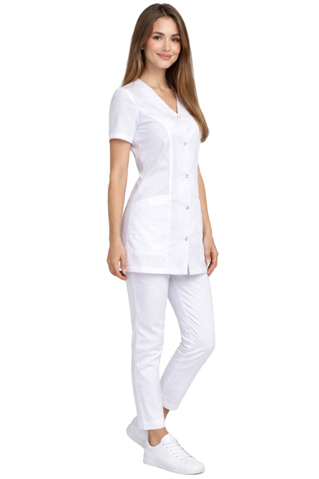 Това е идеалният избор за лекарки, медицински сестри, физиотерапевти, козметици, фризьорки и специалисти в областта на красотата, SPA и велнес, които ценят естетиката и комфорта на работата.
