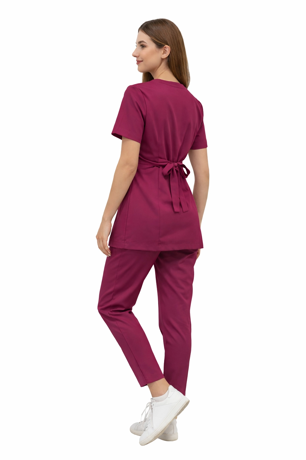 Базов комплект от медицинска униформа премиум в черешов цвят - униформа за жени в медицината и козметичната индустрия
