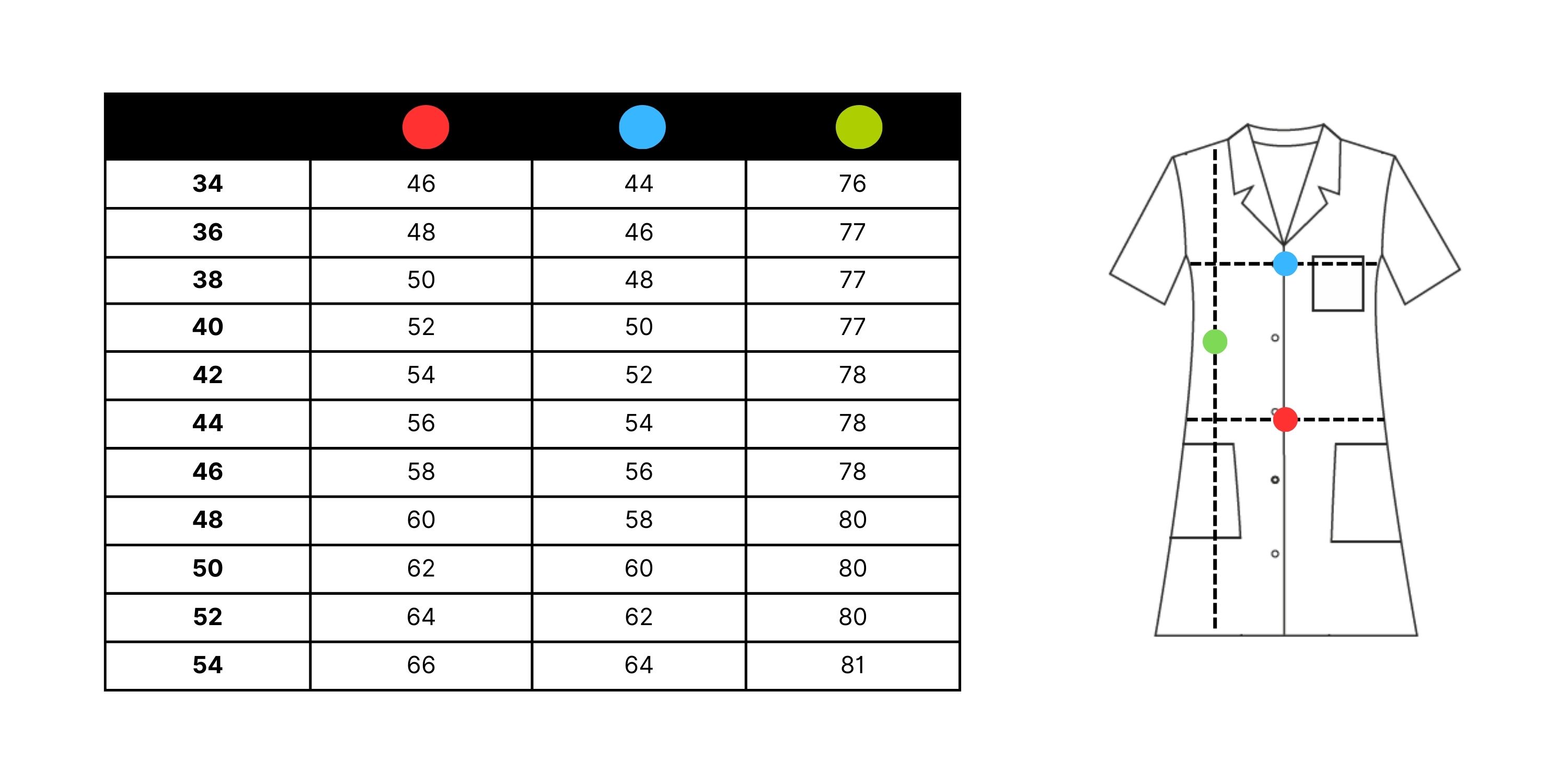Комплектът е подходящ както за здравния сектор, така и за козметични салони, фризьорски салони, клиники за естетична медицина и фирмени рецепции. Модерната кройка осигурява комфорт, като едновременно подчертава професионалния характер на облеклото.