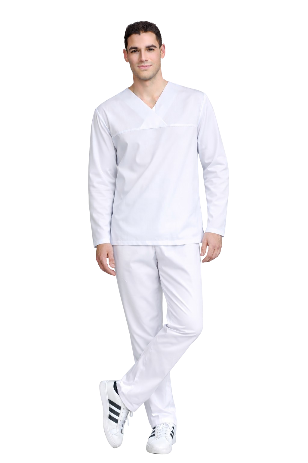 Стилният и функционален медицински комплект за мъже с дълъг ръкав, изработен от 100% висококачествен памук, е идеалният избор за мъже, които ценят естествените тъкани и комфорта на работа. Класическият бял цвят подчертава професионализма, а прилепващият крой осигурява удобство през целия ден.