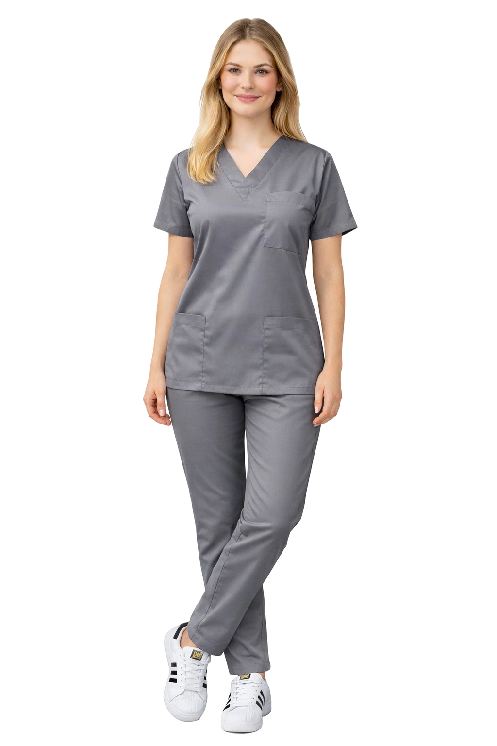 Универсалният сив цвят придава професионален вид на униформата и прави комплекта идеален за болници, клиники, лекарски кабинети, стоматологични кабинети и ветеринарни кабинети.