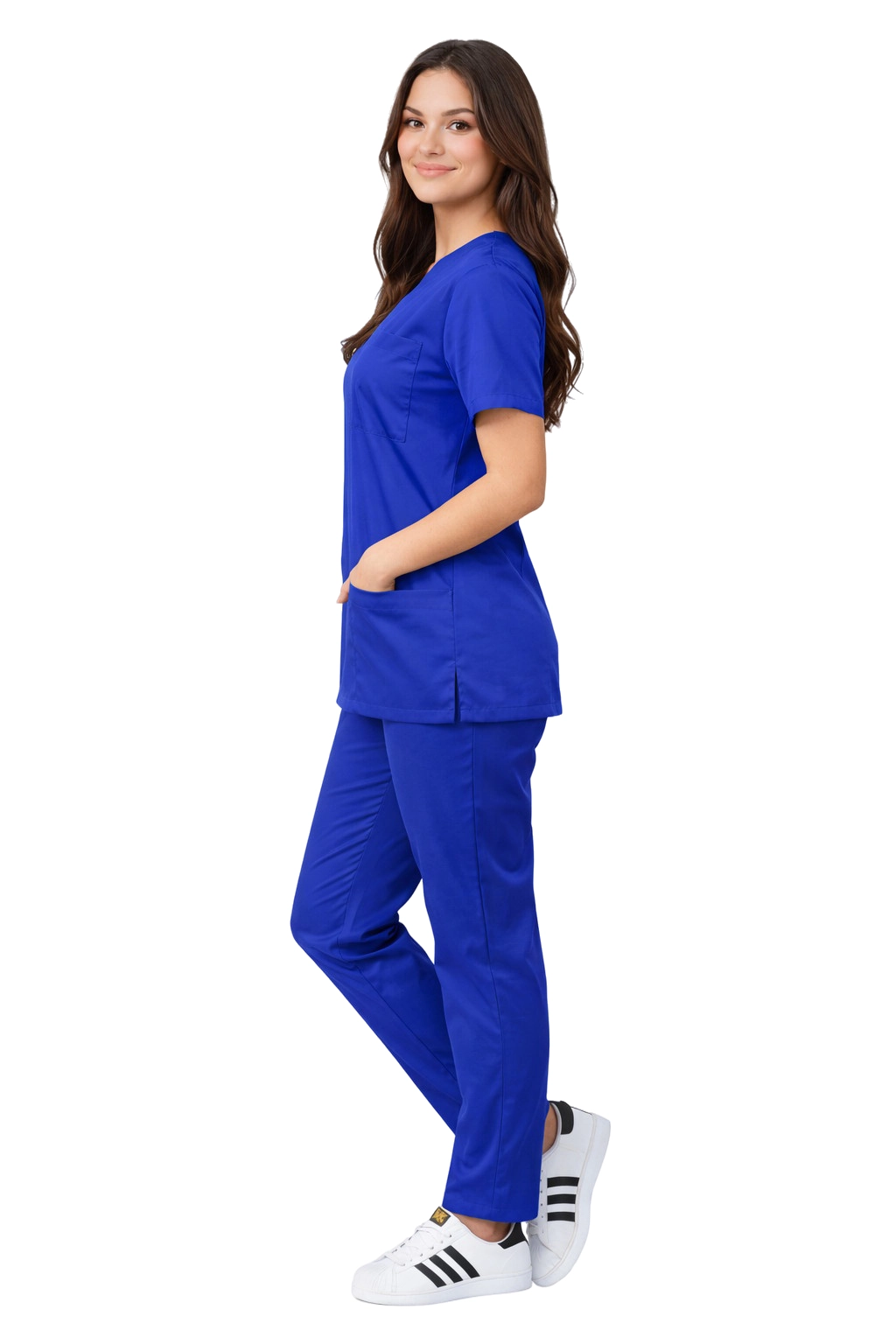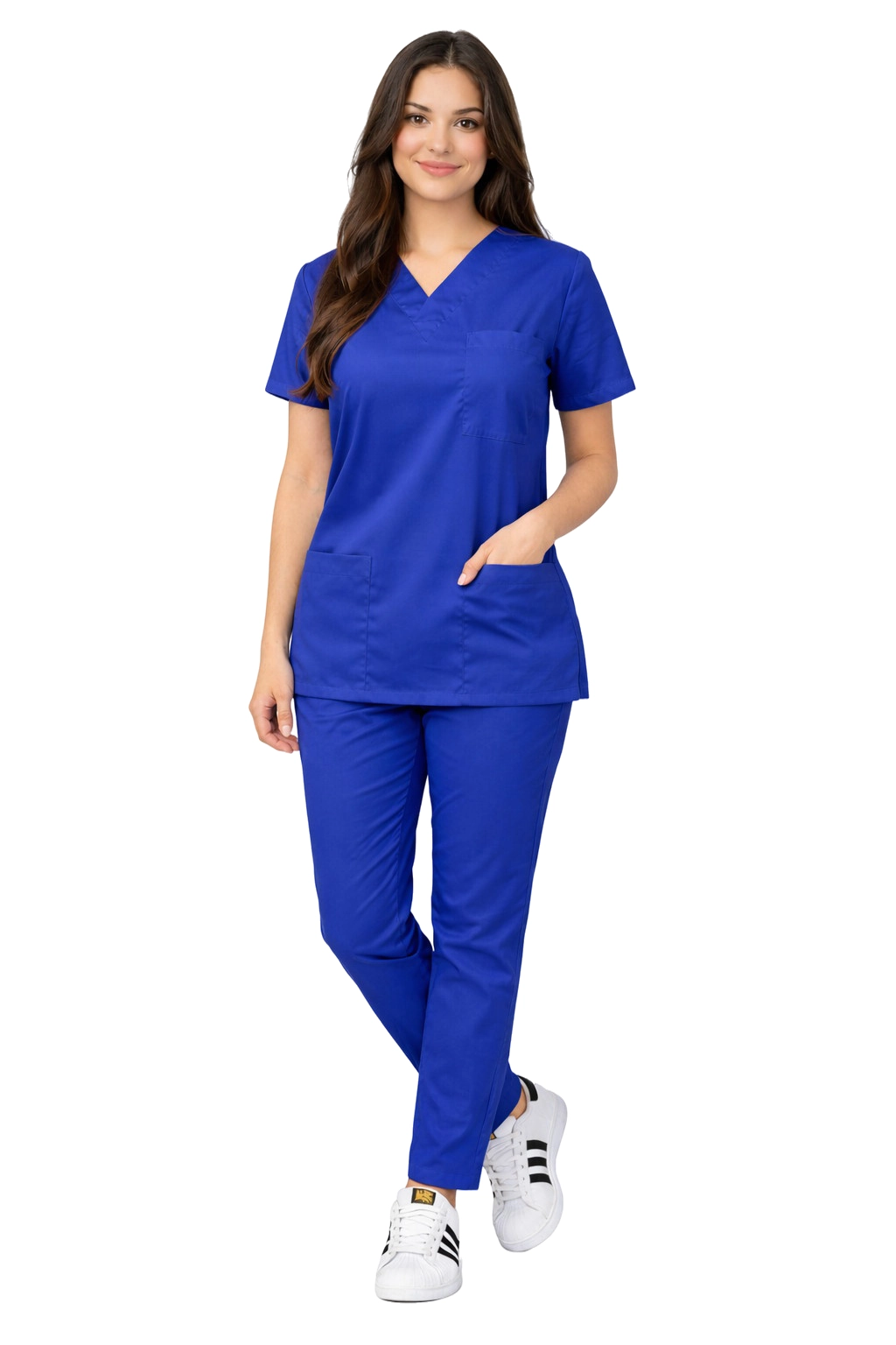 Модерният крой и яркият син цвят придават на униформата професионален характер. Поради това комплектът е перфектен за болници, клиники, лекарски кабинети, както и за други медицински заведения.
