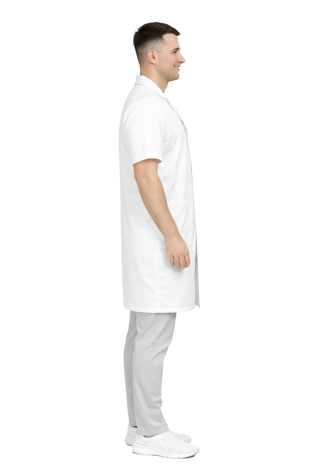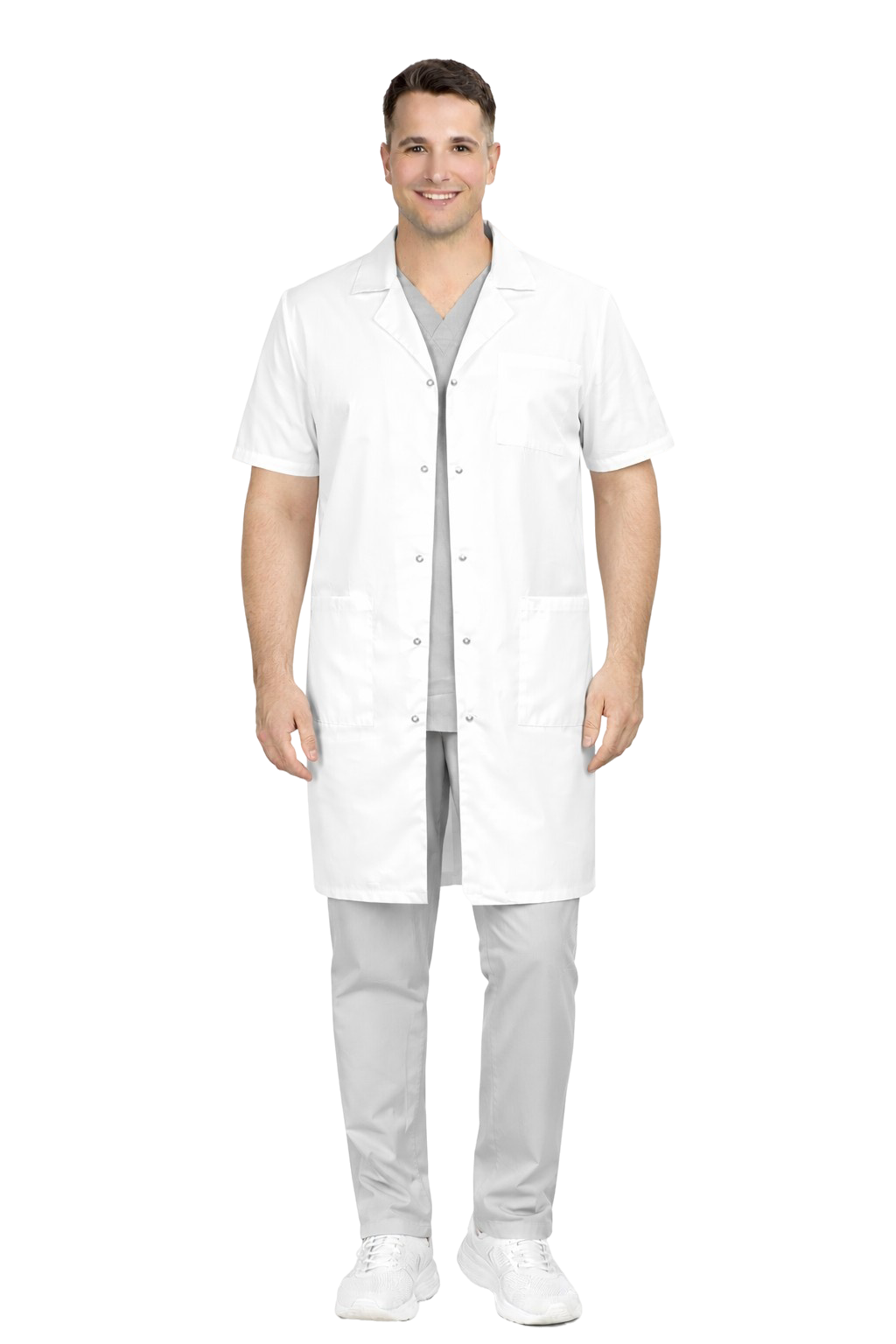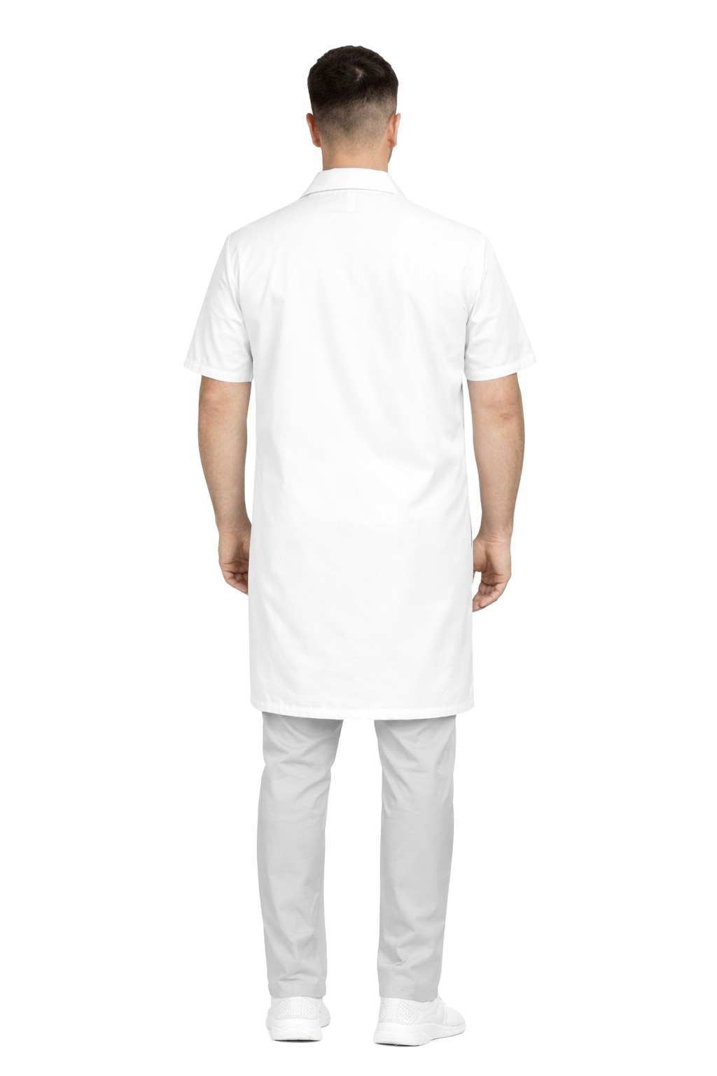 Мъжки медицински престилка – снежнобял, къс ръкав ПРЕМИУМ - 195 - 205 г/м²