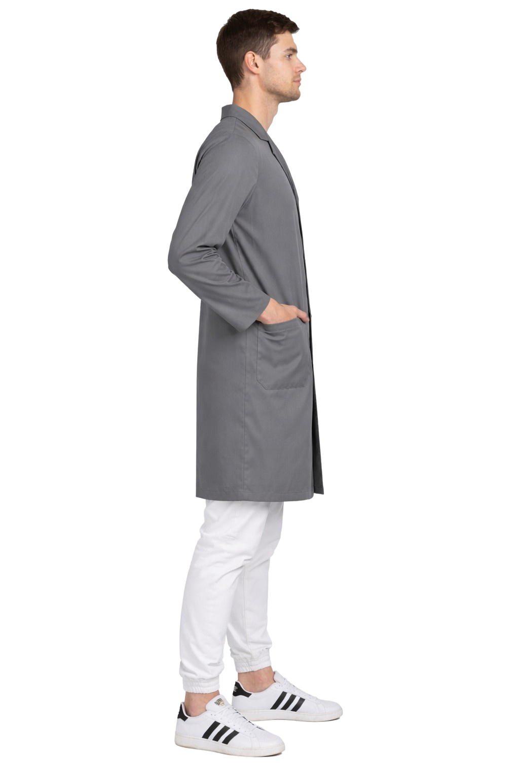 Мъжка лабораторна престилка в сиво с копчета е комбинация от функционалност, комфорт и професионален вид. Идеален избор за ежедневна работа в лаборатории, училища и изследователски институти.