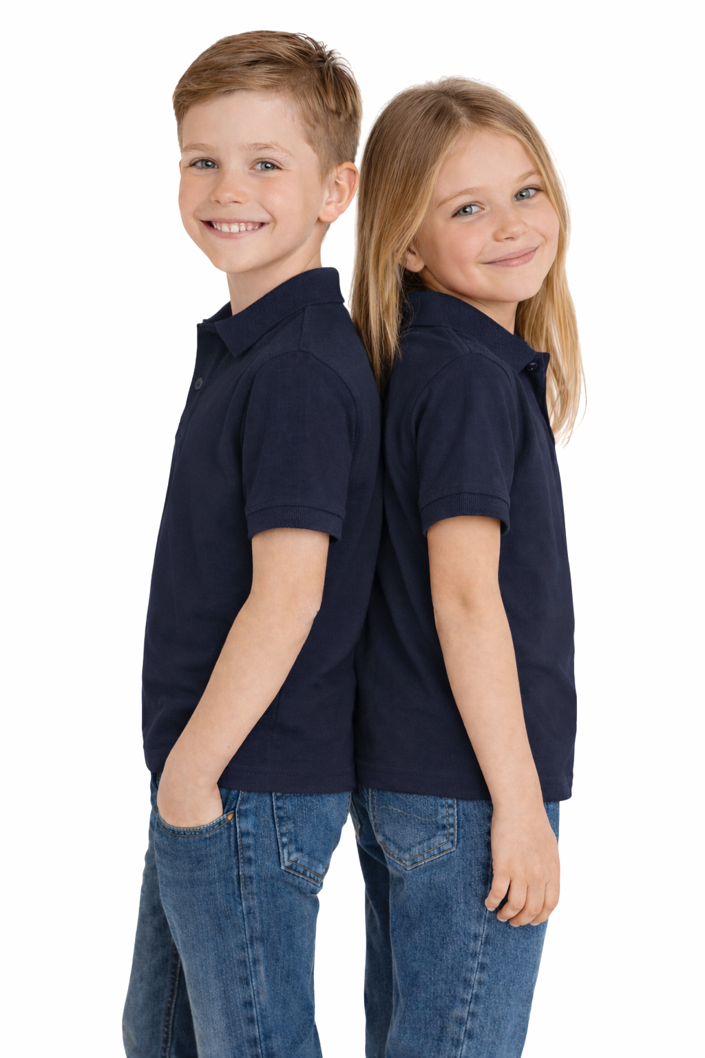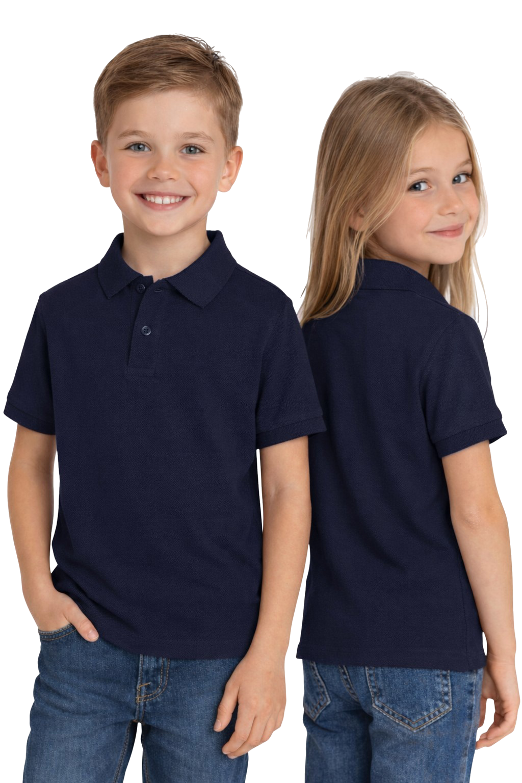 Поло тениска за момче и момиче в тъмносин цвят