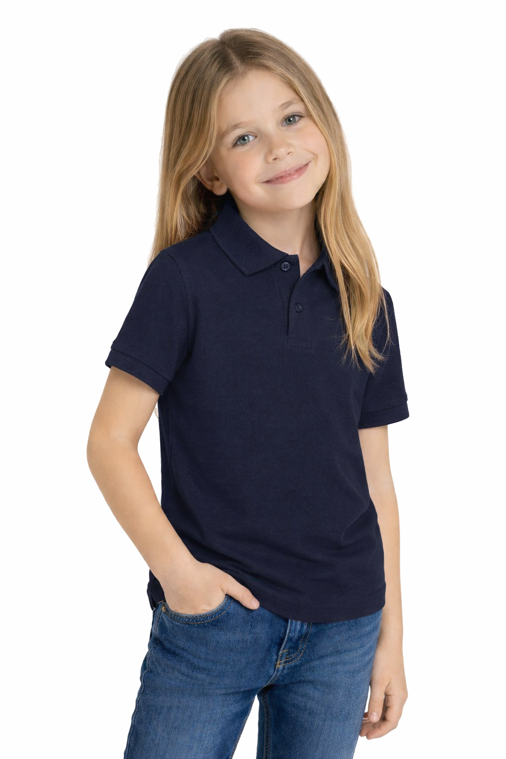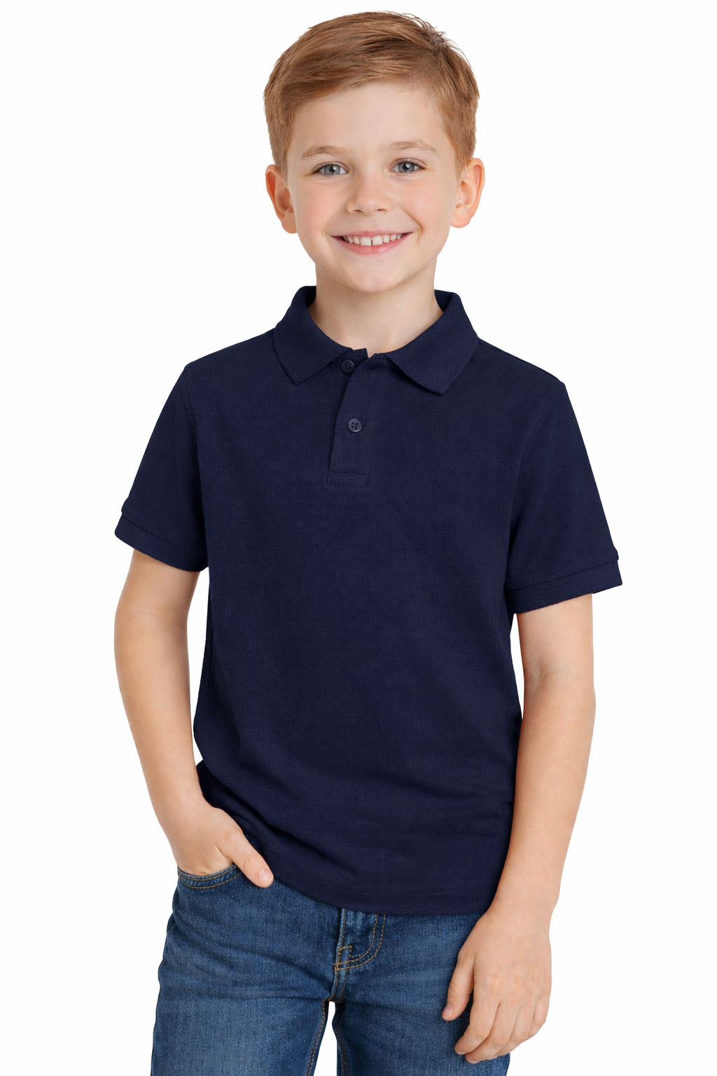 Синята детска поло тениска е идеална за училищни церемонии, семейни празници, първа комуния, рождени дни или други събития, изискващи елегантна и прилична облекла.