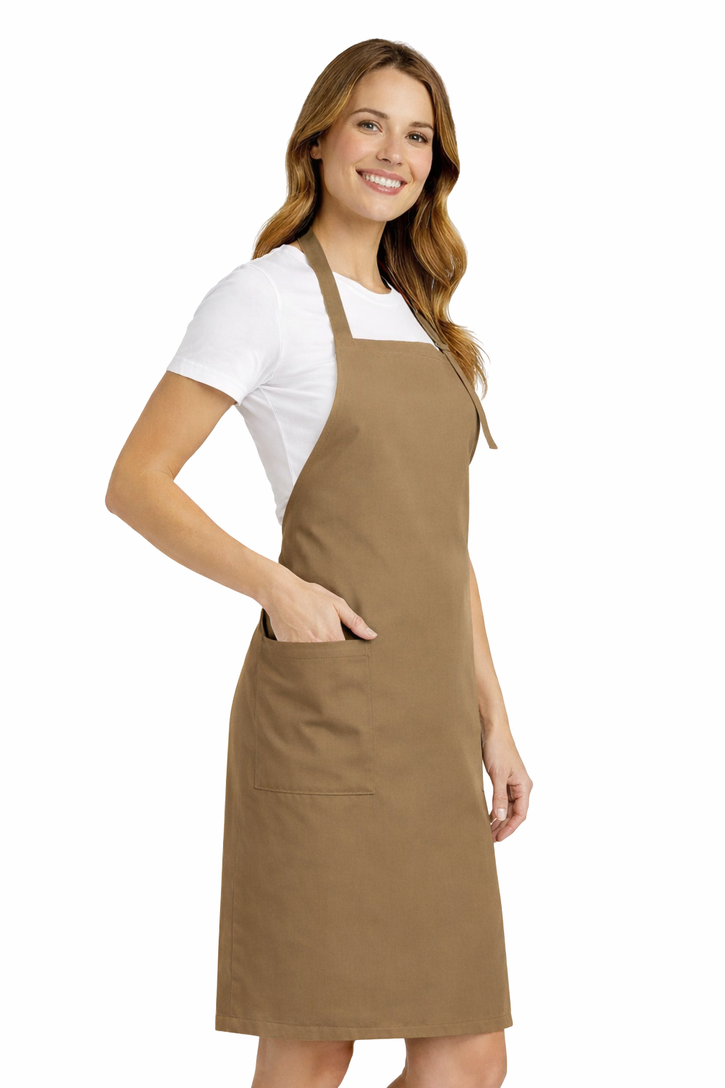 Професионалната престилка, освен защитна функция, трябва също така и да изглежда добре. Бежовият цвят придава на облеклото елегантен и универсален характер, подходящ за различни стилове на гастрономични интериори.